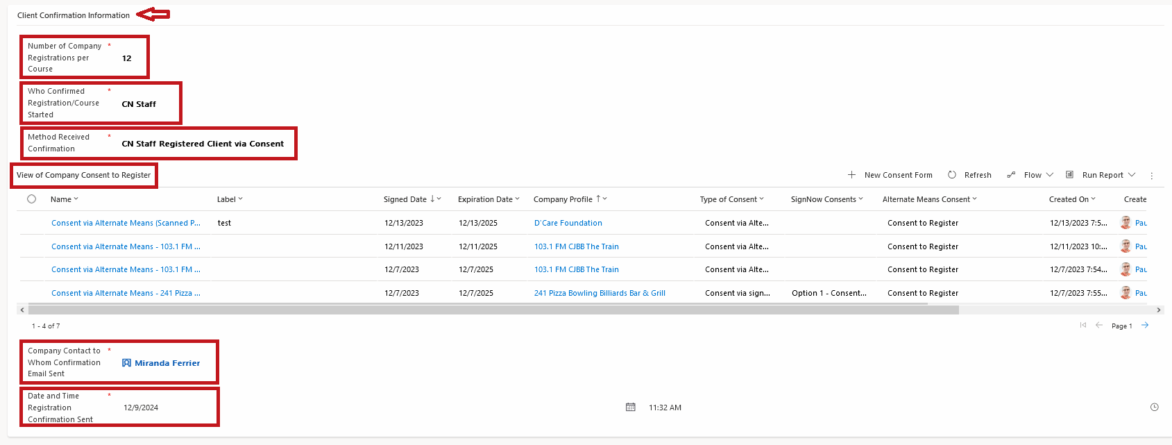 This scenario applies only for courses with a registration process, where we have registered referral partner clients with Referral Partner Consent or company employees or volunteers with Company Consent (collectively referred to as participants), and only when entering registrations as company registrations, not on individual client profiles. See Section 14. of the Generating Recording and Documenting Registrations Policy for more information on when it is permissible to obtain Company or Referral Partner Consent to Register.